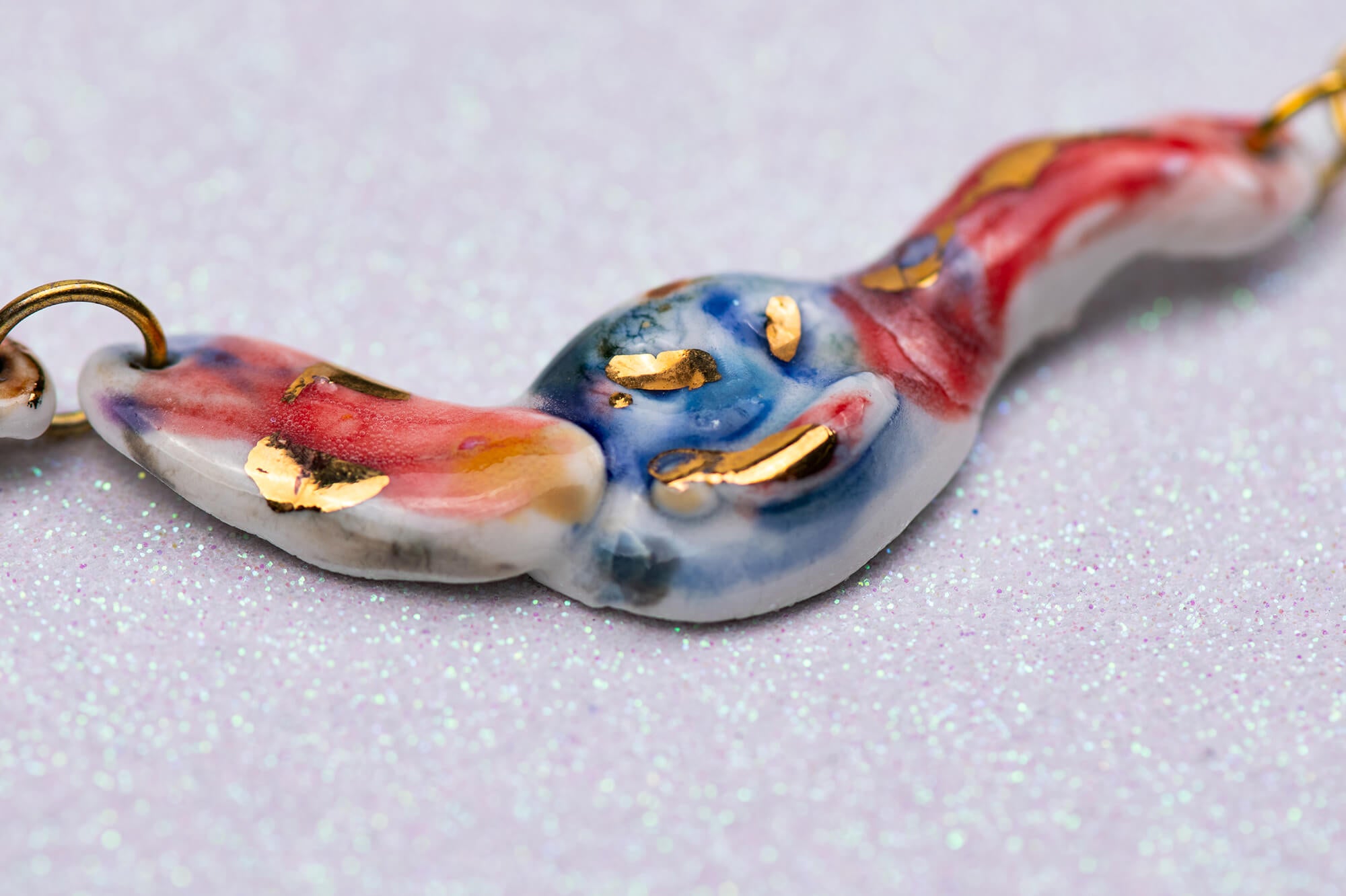 Discover the ethereal beauty of this handmade Angel Porcelain Necklace, a truly artistic and one-of-a-kind jewelry piece. The porcelain pendant features a graceful angel figure, delicately adorned with real 24k gold luster, radiating light and elegance with every movement.